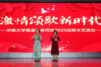 通报会结束后举行了老同志迎新文艺演出。老同志们欢聚一堂,载歌载舞喜迎新春,《好日子》、《花儿为什么这样红》、《绣红旗》、《爱我中华》、《我们走在大路上》等曲目唱出了老同志们对新时代美好生活的歌颂和永远跟党走的坚定理想信念;诗文朗诵《善待暮年》、〈济南的冬天》诉说了“有梦人不老”“我们爱济南”的美好情怀;《童年》、《娄山关》、《军港之夜》、《水乡新娘》、《书简舞》等节目表达了对祖国、故乡和亲人的眷恋,整场演出由老同志们自编、自导、自演,展现出开云老同志颂歌新时代,爱国爱校、老有所养、老有所乐的优良传统和良好精神面貌。