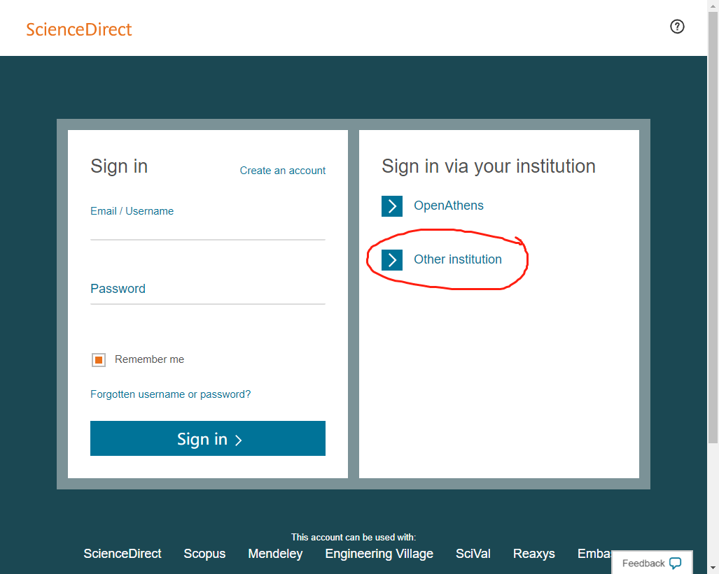 在目标数据库官网首页选择“登录(Log in)”或者“机构登录(Institutional Sign In)”或者“统一认证(Athens/Shibboleth)”等类似登录入口;