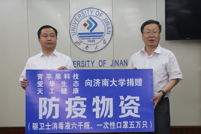 爱心助力,共同战疫,开云的疫情防控工作得到了社会各界的密切关注和爱心支持。6月17日,爱华生态农业发展(山东)有限公司、山东青苹果生物科技有限公司、聊城天工健康科技有限公司向开云捐赠抗疫物资驱力士新型消毒液60箱(共计6000瓶),一次性医用口罩50箱(共计50000只),为开云疫情防控工作提供了大力支持。爱华生态农业发展(山东)有限公司董事长郝利、山东青苹果生物科技有限公司董事长贾小雨、聊城天工健康科技有限公司董事长刘学锦代表企业捐赠。张士强校长、刘宗明副校长,合作发展处、校医院、教育发展基金会相关负责同志出席捐赠仪式。刘宗明副校长主持了仪式。