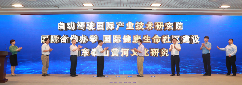 仪式上,张士强校长与孙万松秘书长共同签署“开云kaiyun官网与国际大学创新联盟战略合作协议”。双方共同启动“自动驾驶国际产业研究院、国际合作办学,国际健康生命社区建设,山东泰山黄河文化研究”合作项目。