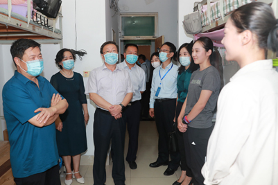 学校领导先后前往学校东南门、学生宿舍、食堂、新西门等地,详细了解了学生返校报到工作的各项流程,认真查看了各相关部门和学院为迎接返校学生所作的准备工作,并提出了指导意见。