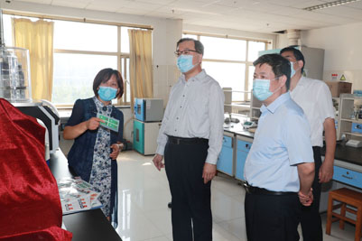 张江汀部长一行首先参观了学校党外知识分子联谊会副会长于京华教授的实验室,该实验室是学校首批挂牌成立的5个无党派人士工作室之一。于京华教授团队长期致力于纸基微流控、仿生传感、食品安全等领域的研究,先后主持了国家自然科学基金面上项目5项、“863”计划课题1项,荣获山东省自然科学一等奖1项。随后,张江汀部长参观了化学化工学院颜梅教授、李村成教授、薄其兵教授和生物科学与工程学院秦晓春教授的实验室。每到一处,张江汀部长都饶有兴趣地与老师们交流,勉励科研人员要瞄准世界科技前沿,在核心关键技术上久久为功,力争有所突破。