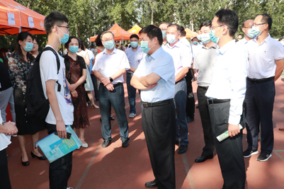 迎新当天,学校领导徐景颜、张士强、张硕秋、王志来到主校区和舜耕校区迎新现场,看望前来报到的新生和家长,亲切慰问奋战在迎新一线的工作人员并实地察看了学生公寓等基础设施。学校领导在迎新报到点认真听取了各学院迎新工作汇报、观看了各单位制作的迎新宣传展板,详细了解迎新工作流程和新生报到情况,与广大工作人员、志愿者以及2020级新同学、家长亲切交谈、合影留念。学校领导鼓励新生珍惜大学生活,努力奋进,勤学苦读,多交朋友,在济大成长成才,成为有家国情怀、责任担当的人。在与学生家长的交谈中,学校领导表示,请家长放心,学校将为学生提供良好的学习和生活条件,保障学生顺利完成学业。张硕秋副书记还来到济南西站等地看望慰问迎新工作人员,欢迎新同学的到来。学校办公室、宣传部、学工部、安全管理处、教务处、合作发展处、信息管理处、后勤管理与基建处、团委等部门负责人,也一同来到迎新现场。