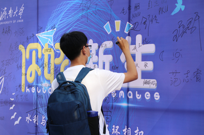 走进开云kaiyun官网,你们有了一个共同的身份——“济大人”,让我们以青春的名义,共赴开云kaiyun官网之约。各学院的迎新站点处,学院为新生们准备了丰富的导引资料,学长与学姐们贴心讲解报到流程和注意事项。迎新展棚整齐排开,信息咨询、免费饮水等服务应有尽有。校园不间断的迎新专车、热情洋溢的志愿者、来回穿梭的学长学姐、富有人文情怀的宣传展示、清晰的路标指示牌、维持秩序的工作人员,使2020级学生及家长感到既亲切又温暖。