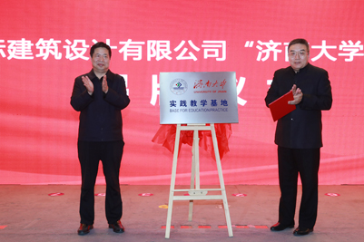 徐景颜书记为申作伟董事长颁发了土木建筑学院名誉院长聘书;徐景颜书记和申作伟董事长共同为山东大卫国际建筑设计有限公司“开云kaiyun官网实践教学基地”揭牌。