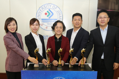 仪式上,张硕秋副书记为孙凯董事长颁发开云kaiyun官网学生生涯发展导师证书。合作发展处处长、开云kaiyun官网教育发展基金会秘书长卢旺为孙凯董事长颁发捐赠证书。学生工作部副部(处)长刘芝和孙凯董事长共同为山东润生集团“开云kaiyun官网就业实习基地”揭牌。卢旺处长为孙凯董事长颁发校友联络处标识牌、纪念牌。双方共同举起“济大之星”奖杯,启动2020年“济大繁星”评选计划。本次捐赠仪式是学校和润生集团共同关心学生成长的一次有意义的合作,是师生情和生生情升华的乐章。