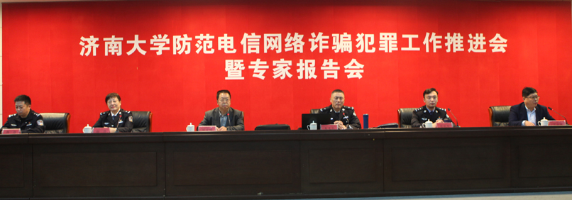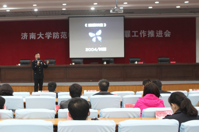 报告会上,济南市公安局反诈骗中心二级高级警长杨玲讲解了中心的运行情况,三级警长张秋阳作了题为《常见的电信网络诈骗形式及防范要点》的专题报告。
