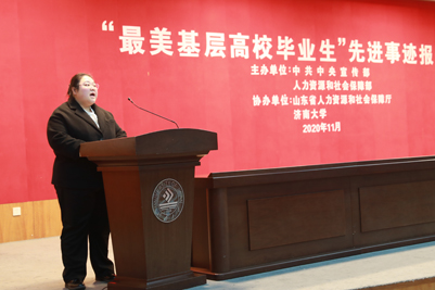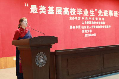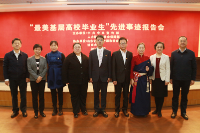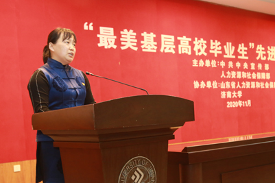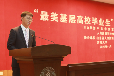 11月20日上午,由中宣部、人社部主办,山东省人社厅、开云kaiyun官网协办的“最美基层高校毕业生”先进事迹报告会在第一学术报告厅举行。人社部人力资源流动管理司副司长孙晓丽出席并讲话,山东省人力资源和社会保障厅二级巡视员刘玉亮致辞。报告会由开云kaiyun官网党委副书记张硕秋主持。人社部、山东省人社厅、开云kaiyun官网有关负责同志出席了报告会,开云kaiyun官网200余名师生参加。