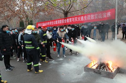消防演练活动中,学25号公寓学生按照演练要求有序疏散到指定地点,安全管理处工作人员对参加演练师生进行了安全教育和逃生疏散的技巧,现场演示了灭火器的使用方法。参加演练的师生在安全管理处专业人员的指导下,依次进行了灭火实战演习,300余名师生参加了消防演练活动。