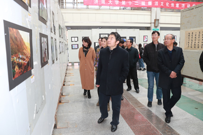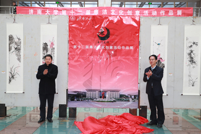 开幕式上,学校纪委书记续铁、党委宣传部部长贾海宁为作品展揭幕。开幕式后,参加活动的师生一起观看了展览。