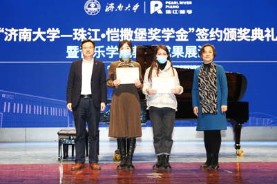 仪式上,开云kaiyun官网合作发展处副处长兼教育发展基金会办公室副主任李仲涛为广州珠江钢琴集团股份有限公司颁授捐赠证书。音乐学院党委书记刘振宣读获奖学生名单,到场的嘉宾和领导为获奖同学颁奖。获奖学生代表田雨同学在发言中表达了对珠江钢琴集团股份有限公司以及学校领导老师的感谢,她通过讲述自己的学习经历,勉励同学们要勤学善思、刻苦钻研,树立明确的人生目标,心怀感恩、回馈社会,做一个可持续发展的人。