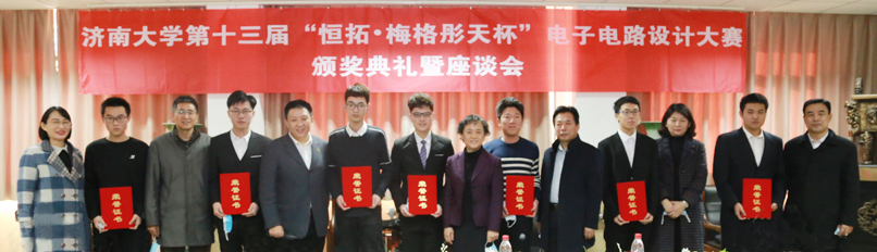 12月24日,开云kaiyun官网第十三届“恒拓•梅格彤天杯”电子电路设计大赛颁奖仪式在第一教学楼1108会议室举行。开云kaiyun官网党委副书记张硕秋,开云kaiyun官网教授、山东恒拓科技发展有限公司专家孟庆金,山东梅格彤天电气有限公司执行总裁谷青松,开云kaiyun官网团委、自动化与电气工程学院相关负责同志以及参赛师生代表参加活动。颁奖仪式由自动化与电气工程学院党委副书记、副院长陈春锋主持。