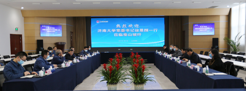 1月21日,学校党委书记徐景颜到泰安市调研,副校长刘宗明,发展规划与学科建设处、科技处、科技成果转化办公室、材料科学与工程学院负责同志参加了活动。泰安市市委书记崔洪刚,市长张涛,市委常委、秘书长李灿玉,泰山玻璃纤维有限公司董事长唐志尧、总经理胡跃武、党委书记吴龙、副总经理刘洪刚、徐永军等参加调研活动。