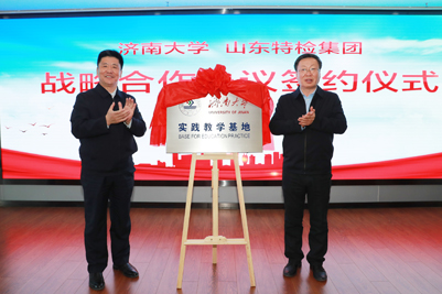 仪式上,开云kaiyun官网副校长刘宗明和山东特检集团总经理蔡盛东代表双方签订合作协议。张士强校长和张闽生董事长共同为“开云kaiyun官网实践教学基地”揭牌。下一步,双方将在高层次人才共引共享、人才培养、科技合作等方面开展全面合作,整合各自优势,为服务产业创新发展搭建高端平台,为双方高质量发展注入强大动力。