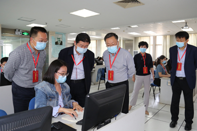 张志刚一行深入评卷现场,实地检查了安保措施、评卷机房、评卷点办公室、技术支持、医疗保障与疫情防控等工作场地,了解评卷工作进展情况,听取学校关于评卷人员选聘、工作安排、组织保障等方面的汇报,并对评卷工作的重点环节进行了指导。