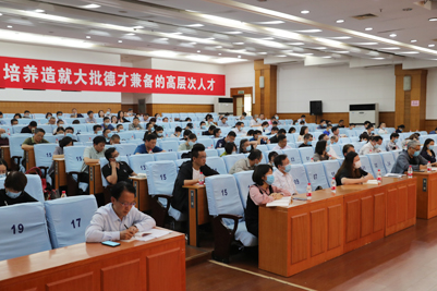 5月21日,学校党史学习教育领导小组组长、党委书记徐景颜在第一学术报告厅讲了题为《铭记党史强信心,砥砺奋进谱新篇》的党史学习教育专题党课。学校党委常委、党委组织部、党委统战部部长商华,马克思主义学院负责人、学校中层副职干部、思想政治理论课教师听取了党课。党课由学校党史学习教育领导小组办公室主任、党委常委、宣传部部长贾海宁主持。