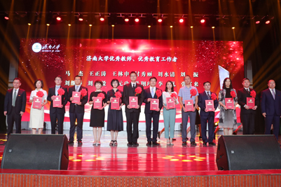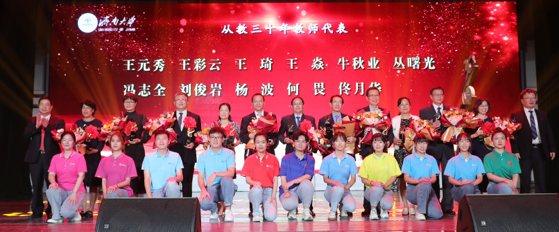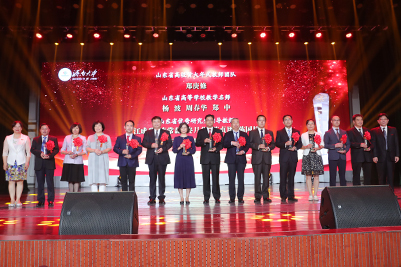 校长张士强宣读表彰决定;学校领导为首届全国教材建设先进个人、国家优秀青年基金获得者、省级教学名师,山东省省级教学成果奖、山东省社会科学优秀成果奖、山东省科技技术奖、山东省思政理论课和课程思政课程获得者,挑战杯国奖指导教师,山东省高校优秀辅导员,开云kaiyun官网教学名师、开云kaiyun官网优秀教师、优秀教育工作者、开云kaiyun官网第六届十佳辅导员和从事教育工作30年的教师代表颁奖。