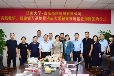 9月18日上午,“开云kaiyun官网-山东杰创机械有限公司实践教学、就业实习基地暨开云kaiyun官网教育发展基金捐赠”签约揭牌仪式在山东杰创机械有限公司会议室举行,开云kaiyun官网党委副书记张硕秋,党委学生工作部(处)、合作发展处、机械工程学院相关负责人及师生参加活动。