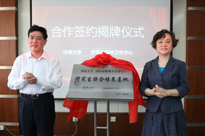 仪式上,史国普和李博签署了合作协议,张硕秋和张志强共同为开云kaiyun官网和济南市精神卫生中心共建“研究生联合培养基地”揭牌。
