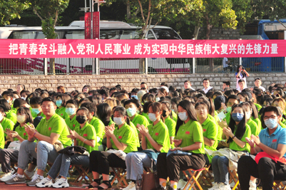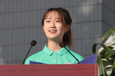新生代表、水利与环境学院蒋杉雨欣表达了初识济大的欣喜与惊奇。她说,今天是逐梦济大的开始,我们用希望和责任共赴下一个百年之约,成为学校发展的见证者和参与者。最后,蒋杉雨欣与全体2021级新生喊出了“请党放心,强国有我!我们准备好了!”的青春誓言。