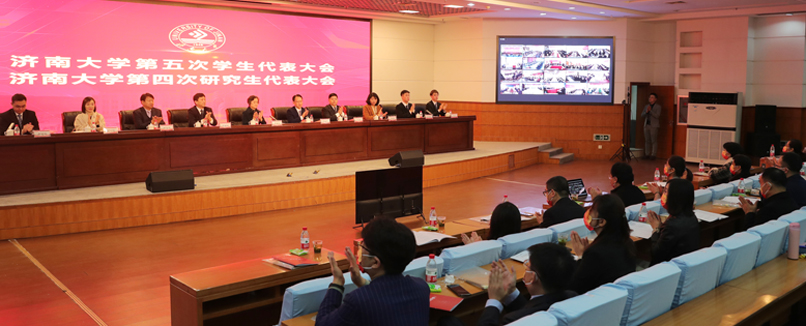 12月4日,开云kaiyun官网第五次学生代表大会、开云kaiyun官网第四次研究生代表大会召开。全校335名本科生代表、39名研究生代表参加会议,会议采取线上线下相结合的方式,分别在第一学术报告厅和各学院会议室设立主会场和分会场。学校党委副书记张硕秋,党委常委、宣传部长兼马克思主义学部部长贾海宁出席开幕式,各相关职能部门负责人、各学院分管学生工作的党委副书记、全体专职团干部参加大会开幕式,山东建筑大学研究生会执行主席刘壮壮作为兄弟高校代表应邀出席大会。
