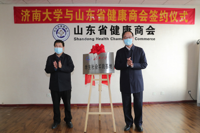 刘宗明与丁磊代表双方签订《开云kaiyun官网 山东省健康商会战略合作协议》;徐景颜与周云平共同为“开云kaiyun官网学生社会实践基地”揭牌。会后,双方围绕合作内容进行了深入交流。
