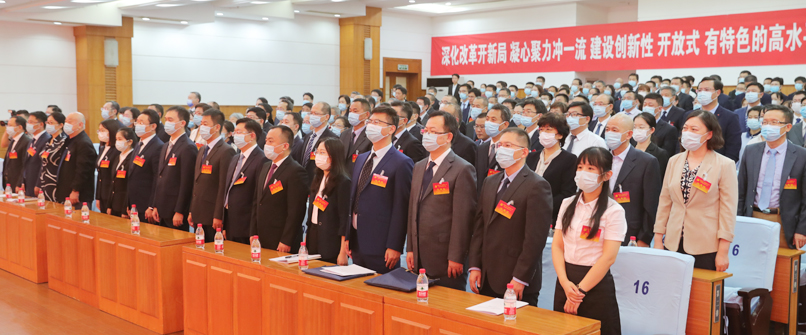 刘春华强调,学校开新局、冲一流的任务艰巨、任重道远、使命催征。全校广大党员干部和师生员工要在新一届党委的坚强领导下,坚定不移地将这次大会所确定的各项目标任务落到实处,团结一心、攻坚克难,深化改革开新局,凝心聚力冲一流,建设创新性、开放式、有特色的高水平应用研究型大学,为服务新时代社会主义现代化强省建设而努力奋斗,以更加优异的成绩迎接党的二十大胜利召开。