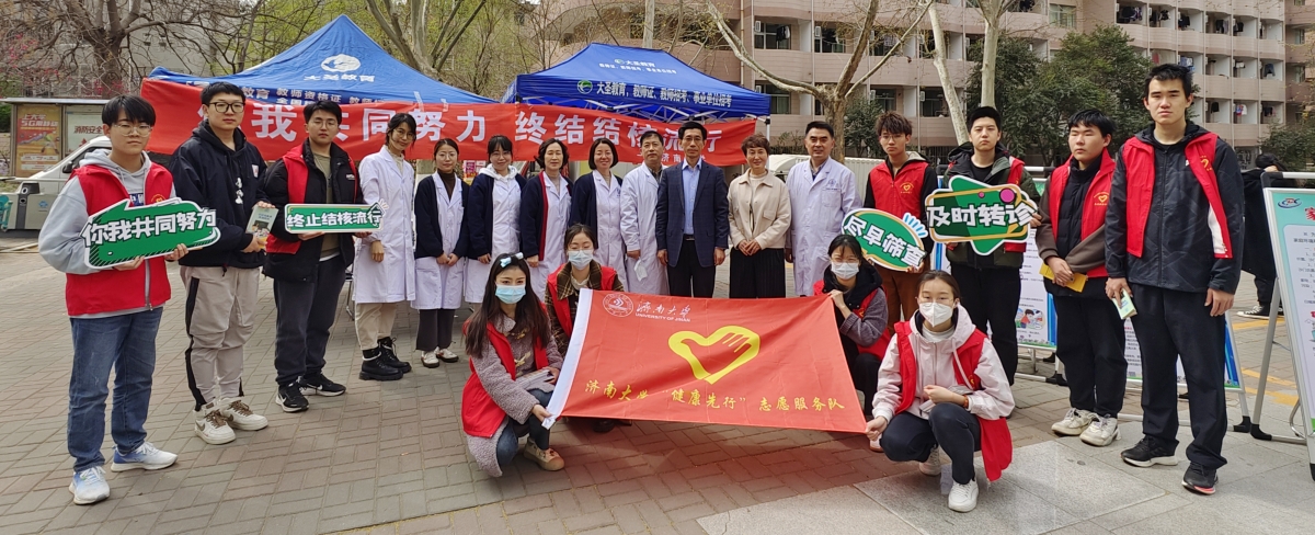 3月23日,校医院“健康先行”志愿服务队联合山东省公共卫生临床中心、市疾控、区疾控等单位在中海广场开展了结核病防治宣传义诊活动,为社区公众宣传肺结核防治知识,为到场的居民进行义诊、免费测量血压、发放健康知识手册等,向公众普及结核病知识。
