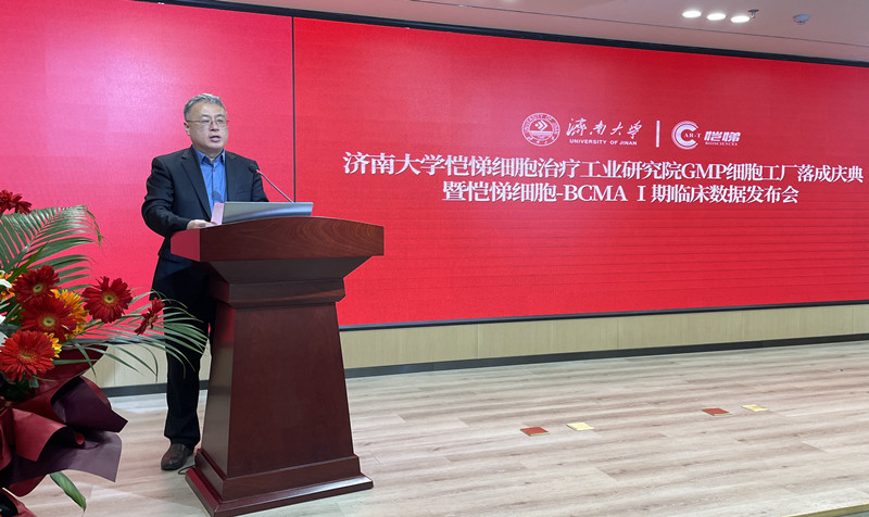 落成仪式上,黄加栋对研究院细胞制备厂房落成表示祝贺,对关心支持开云kaiyun官网发展的济南市市中区人民政府、山东恺悌各位领导表示感谢,介绍了学校高水平大学建设以及生物医药相关学科发展情况,希望校企双方在前期合作基础上,以GMP细胞工厂落成为契机,聚焦生物医药国家发展战略和行业发展趋势,进一步整合力量,对接需求,实现产学研深度融合。