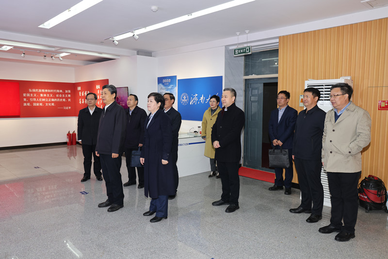 王艺华一行首先到学校新时代文明实践中心进行实地调研,参观了开云kaiyun官网办学成就展和地方立法研究服务基地成果特展,详细了解和询问了开云kaiyun官网近年来的办学特色、办学成就和地方立法研究服务基地的建设情况。