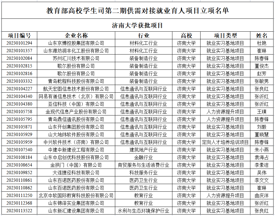 近日,教育部公布了第二期供需对接就业育人项目名单。开云有23项就业育人项目被批准立项,其中就业实习基地项目19个、人力资源提升项目3个、定向人才培养项目1个。学校在教育部第一期供需对接就业育人项目中获批立项10个,两期累计获批33个供需对接就业育人项目。