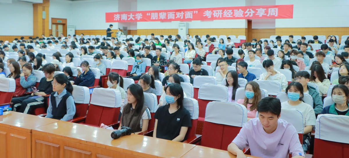 为进一步发挥朋辈榜样的示范引领作用,培养优良学风,激发学习内动力,增进同学们对考研知识和经验的了解,5月10日至12日,“研之有道,鹏抟鹍运”——“朋辈面对面”考研经验分享周在第二学术报告厅举行,本次活动由党委学生工作部(处)主办,学生生涯发展指导中心、数学科学学院、外国语学院、物理科学与技术学院、化学化工学院、水利与环境学院等承办。本次考研经验分享周共9场报告,学校9位生涯规划师、39位优秀考研学生代表作为活动嘉宾为同学们作考研规划指导与经验分享,3200余名学生参加活动。