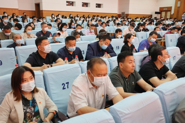 根据学校学习贯彻习近平新时代中国特色社会主义思想主题教育工作安排,5月30日下午,学校党委书记刘春华讲授主题教育专题党课。省委第二十二巡回指导组成员肖传强、田申到会指导。报告会以线上线下相结合的方式进行,全体在家校领导,全体中层干部、离退休党员代表、学生党员代表在主会场参会;全体科级干部、辅导员,部分教工党员及学生党员代表在线上参会。学校党委副书记查玉喜主持报告会。