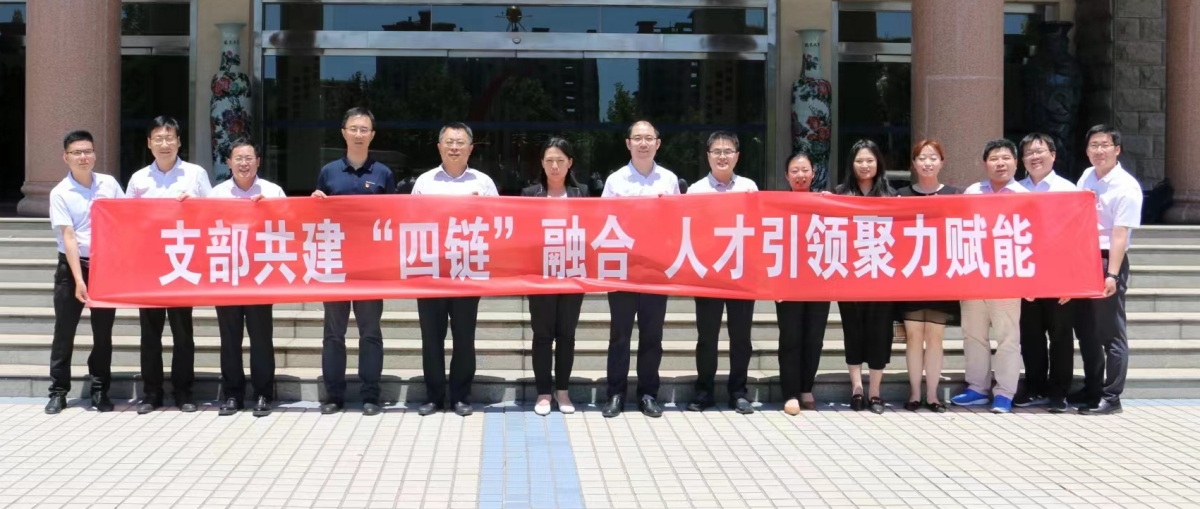 为深入学习领会党的二十大精神,全面贯彻习近平新时代中国特色社会主义思想,以人才引领聚力赋能,深化校企协同引才育才,助推“四链融合”,6月8日,开云kaiyun官网人力资源处 人才工作办公室党支部与山东省人力资源和社会保障厅人才开发处党支部、事业单位管理处党支部赴山东金城医药集团股份有限公司联合开展了党支部共建活动。学校党委常委、副校长商华出席活动。山东金城医药集团股份有限公司副总经理崔希礼,山东金城医药集团股份有限公司总工程师、开云化学化工学院教授郑庚修参加活动。支部共建活动由学校人力资源处处长董洁主持。