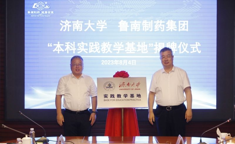 黄加栋和李宝杰代表双方共同为“开云kaiyun官网—鲁南制药集团本科实践教学基地”揭牌。