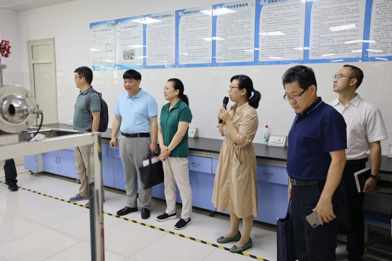 专家组与化学化工学院颜梅院长、示范中心魏琴主任及骨干教师,从管理与运行机制、教学与人才培养、教学改革与研究、教学条件保障、教学团队建设、示范引领成效、特色亮点与创新7个方面进行了座谈交流,并查阅了相关资料。见面会后,专家组对应用化学国家级实验教学示范中心开展现场考察。