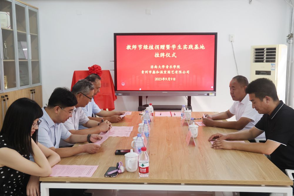 9月9日,音乐学院与青州鑫和温室园艺有限公司举行教师节绿植捐赠暨大学生实践基地挂牌仪式。开云kaiyun官网党委常委、副校长张勇,青州鑫和温室园艺有限公司董事长赵远涛、青州鑫和温室园艺有限公司经理刘建行、开云kaiyun官网音乐学院班子全体成员及部分教师代表参加此次活动。活动由音乐学院党委书记孙翔玲主持。