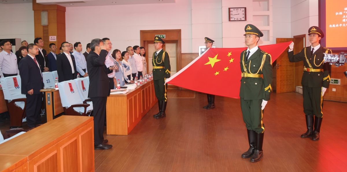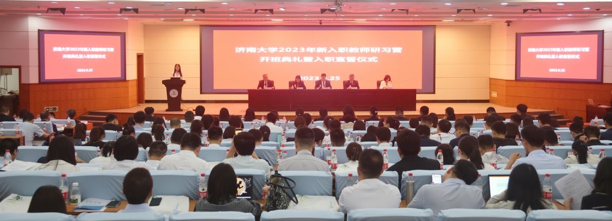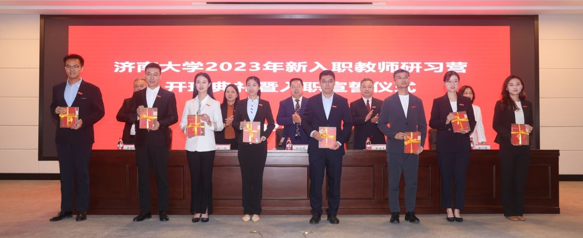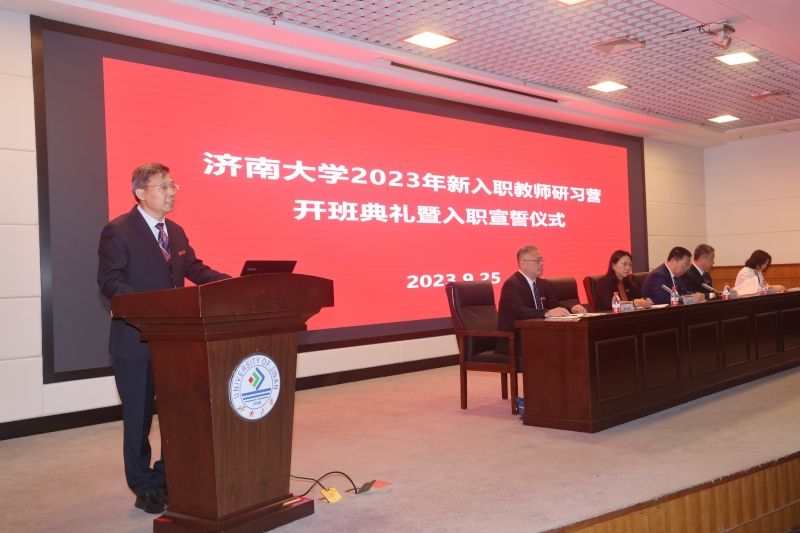 随着雄壮的国歌声响起,全体新入职教师高举右手,面向国旗,在老教师代表泰山学者、第三批“全国高校黄大年式教师团队”核心成员、省建筑材料制备与测试技术重点实验室主任黄世峰教授带领下庄严宣誓,铮铮誓言表达了新教师为党的教育事业贡献全部智慧和力量的决心和信心。