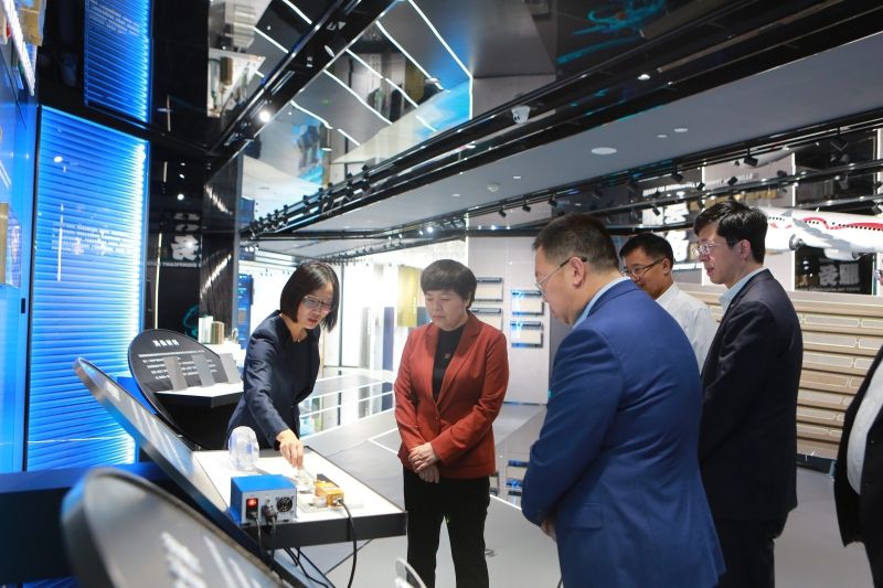 在郅晓、余明清等陪同下,刘春华一行参观了中国建材集团展馆,深入了解了中国建材集团的发展历程、产业结构以及科研创新等情况。