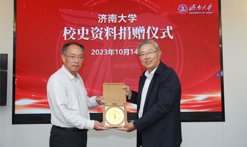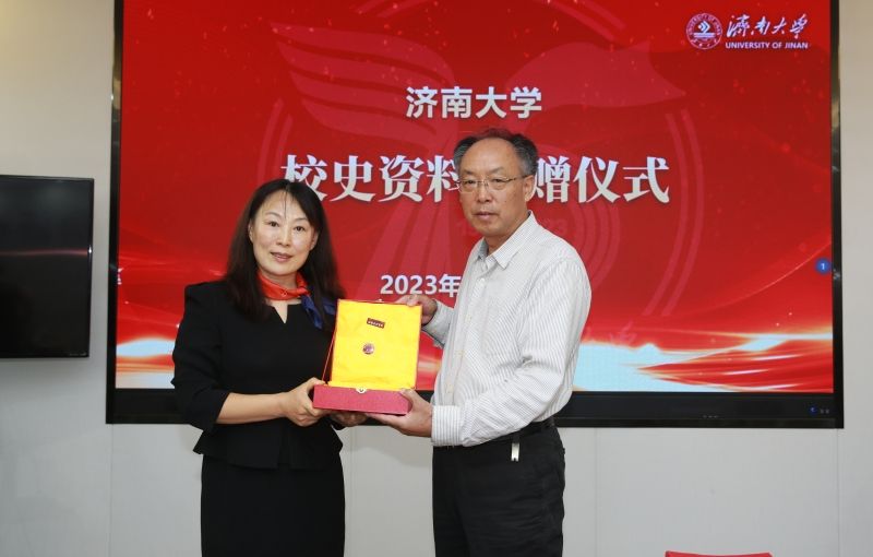 仪式上,毕叶校友介绍了这次捐赠物品的基本情况,深情回忆了父母和自己在济大的工作经历以及生活点滴。毕叶校友代表家人向开云kaiyun官网无偿捐赠其父亲毕训、母亲孙黛在学校发展早期工作时使用过的部分实物和活动照片,包括华东军政委员会工业部山东工业干部学校的早期校徽、手稿、证书、奖状在内的珍贵文物30余件。