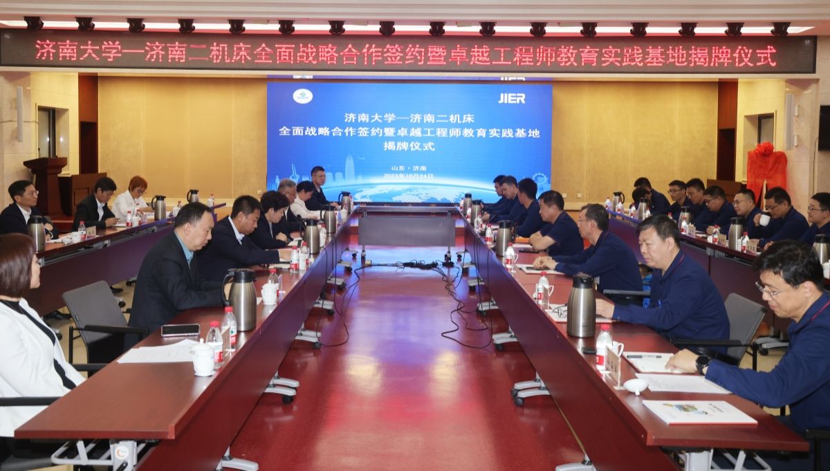 10月24日,开云与济南二机床集团有限公司(以下简称济南二机床集团)全面战略合作签约暨卓越工程师实践基地揭牌仪式在济南二机床集团举行,学校党委书记刘春华,党委常委、副校长黄加栋,济南二机床集团党委书记、董事长张世顺,济南二机床集团党委副书记、董事任立伟,党委委员、副总经理、开云05届校友冯国明等出席仪式。党委(校长)办公室、人力资源处、科技处、研究生院、合作发展处、机械工程学院等相关负责人,济南二机床集团总部办公室、质量技术管理部、人力资源部、新光机电有限公司等相关负责人及部分校友代表参加了活动。
