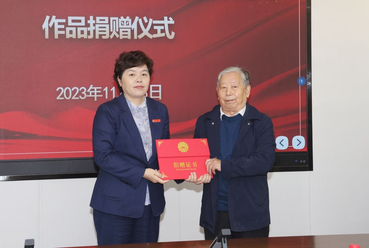 捐赠仪式开始前,刘春华与来校嘉宾一一握手进行交流,向贺惠邦先生及亲属、维佳副会长,以及长期以来关心支持学校事业发展的山东省教育厅、中国收藏家协会、山东省老教授协会领导嘉宾表示热烈欢迎和由衷感谢,并强调学校将管好用好红色教育资源,勇担立德树人根本任务。