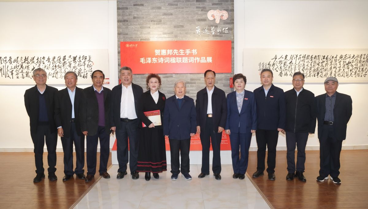 中国杰出毛体书法家贺惠邦,中国收藏家协会副会长兼《中国收藏家》会刊主编维佳,山东省教育厅(省委教育工委)二级巡视员邓俊庆,山东省老教授协会会长赵彦修、常务副会长毛有高、副会长刘邦治、郑三,学校党委书记刘春华、党委副书记查玉喜,贺惠邦先生亲属代表,学校办公室、党委宣传部、离退休工作处、合作发展处、图书馆、档案馆(校史馆)、马克思主义学院、美术与设计学院负责同志,部分学生代表出席活动。学校党委常委、宣传部部长贾海宁主持捐赠仪式。