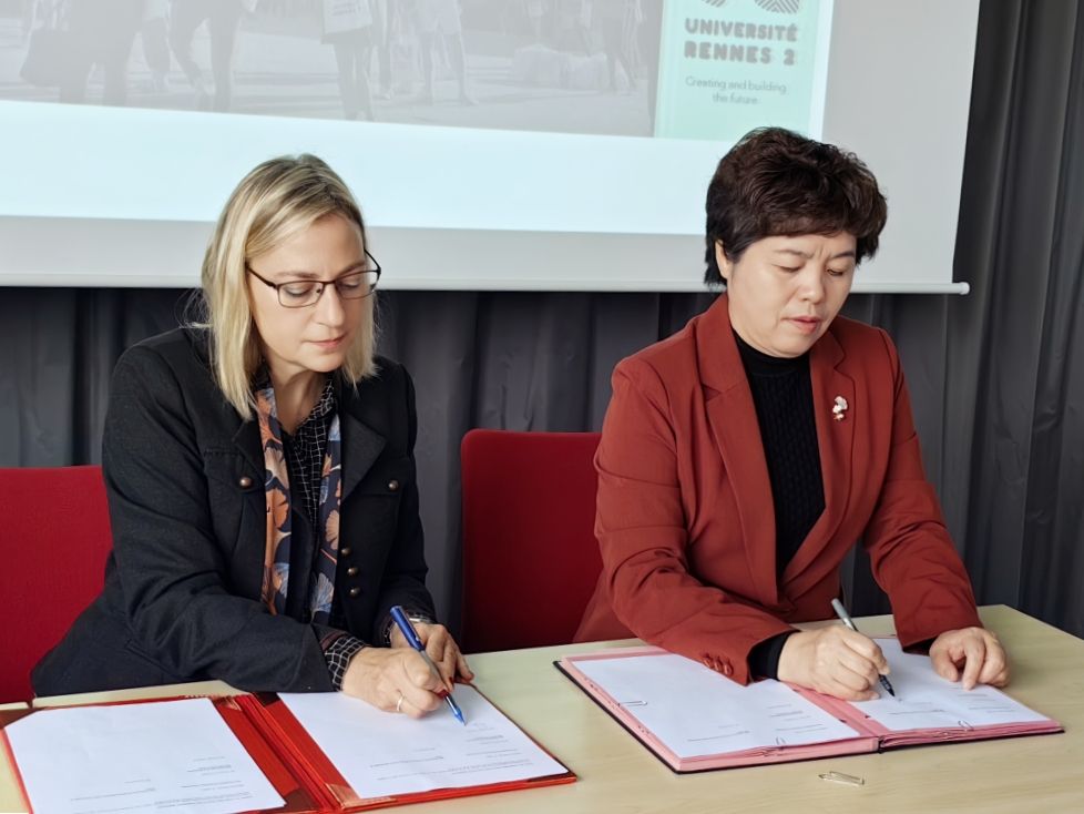 在雷恩二大,代表团与副校长埃德维热(Edwinge Fusaro)及语言系、应用外语系、社会及经济管理处相关负责人会谈,法国布列塔尼大区驻山东总代表柯妮女士参加会谈。会上双方共同回顾了自建立友好合作关系以来在本科学生交流互访方面取得的成绩,并就未来多层次学生交流、科研合作领域进行深入探讨。座谈结束后,双方续签了《开云kaiyun官网与雷恩二大友好合作备忘录》《开云kaiyun官网与雷恩二大学生交流协议》。