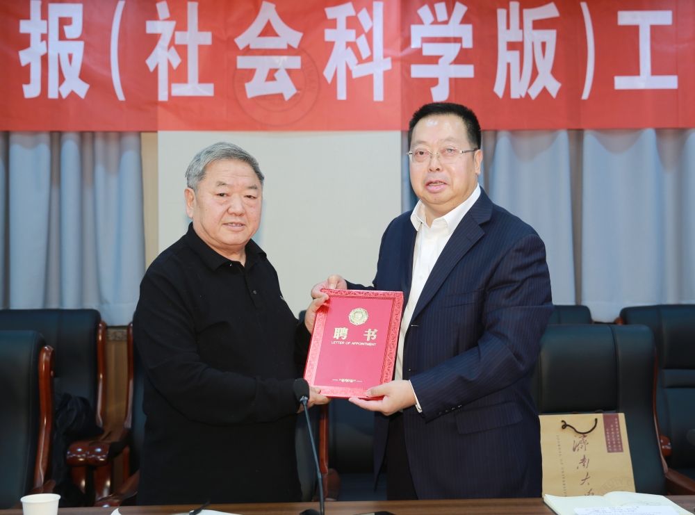 刘宗明宣布了学校继续聘请武卫华编审担任学报(社会科学版)编委会主任的决定,并为武卫华编审颁发聘书。