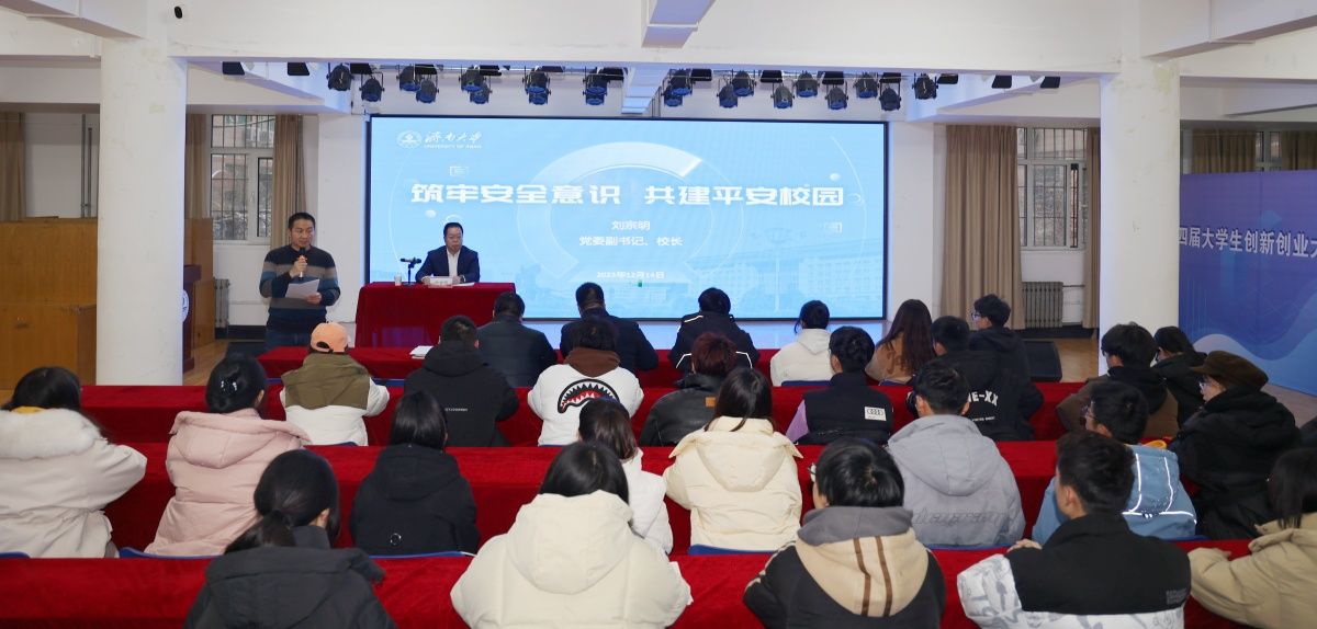12月14日下午,学校党委副书记、校长刘宗明为师生代表作了题为“筑牢安全意识,共建平安校园”的安全报告。党委学生工作部(处)、党委保卫部 安全管理处、团委等相关部门负责同志与同学们一起听取了报告。