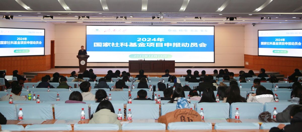 12月15日下午,2024年度国家社科基金项目申报动员会在第一学术报告厅举行,学校党委副书记、校长刘宗明出席会议并讲话,党委副书记查玉喜主持会议。各文科学院党委书记、院长、分管科研工作副院长、科研秘书,独立运行科研平台负责人,各文科学院(平台)教师,社科处全体成员参加会议。