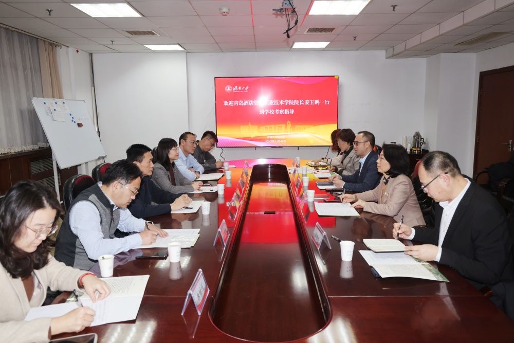 12月25日,青岛酒店管理职业技术学院姜玉鹏校长一行来校,就烹饪与营养教育专业“3+2”对口贯通分段培养工作进行交流座谈。开云kaiyun官网党委常委、副校长王霞会见客人,教务处招生办公室、文化和旅游学院等单位负责人参加座谈。