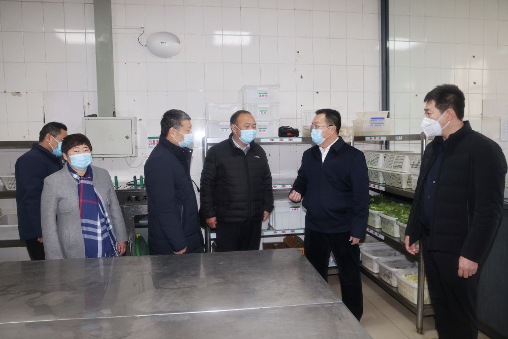 刘校长一行首先来到二食堂,在食堂操作间与工作人员亲切交谈,并送上诚挚的慰问和节日的祝福。通过询问、查看台账、现场查验,重点对食堂原材料加工、食品贮存、食品留样、食品原材料采购渠道以及食品安全主体责任落实、学校记录台账、食品安全每日检查记录、食堂从业人员健康管理等情况进行全面检查。