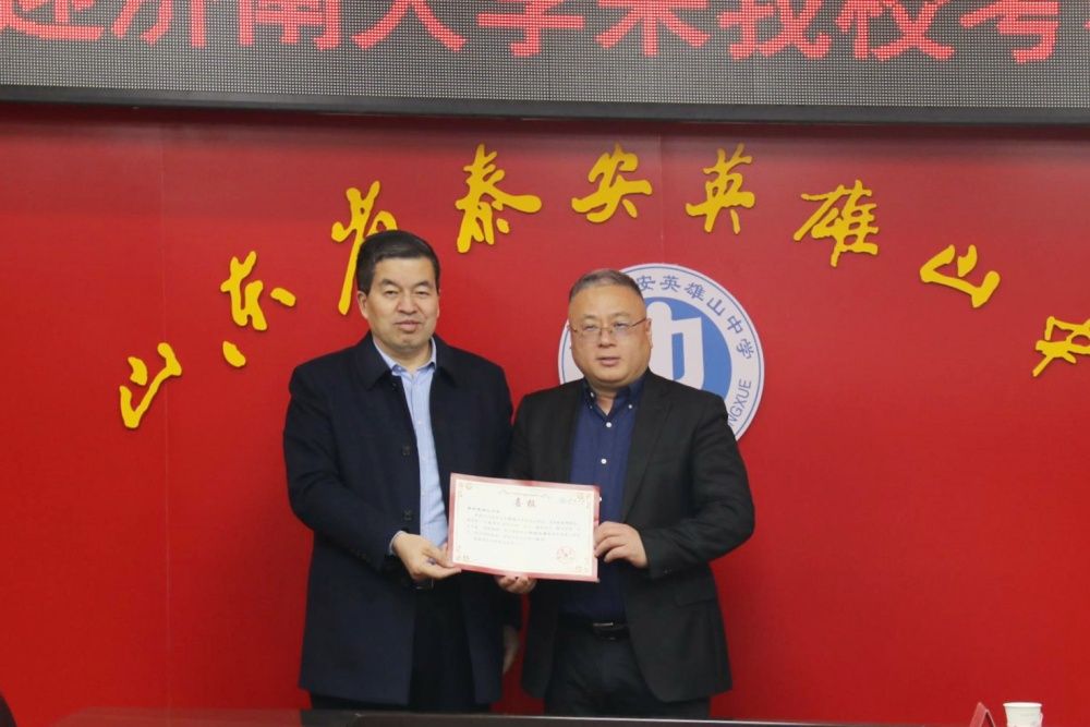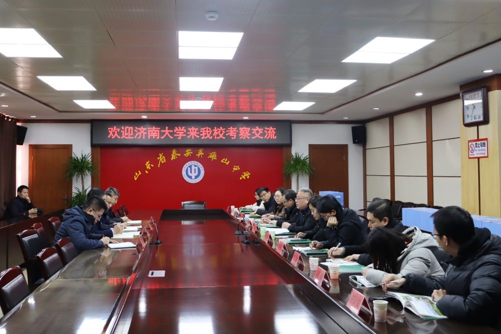 黄加栋一行来到泰安市英雄山中学,开展优秀生源基地回访及招生宣传活动。英雄山中学党委书记、校长李金山,副校长宋圣君、谢龙,党委委员苏宗新参加活动。